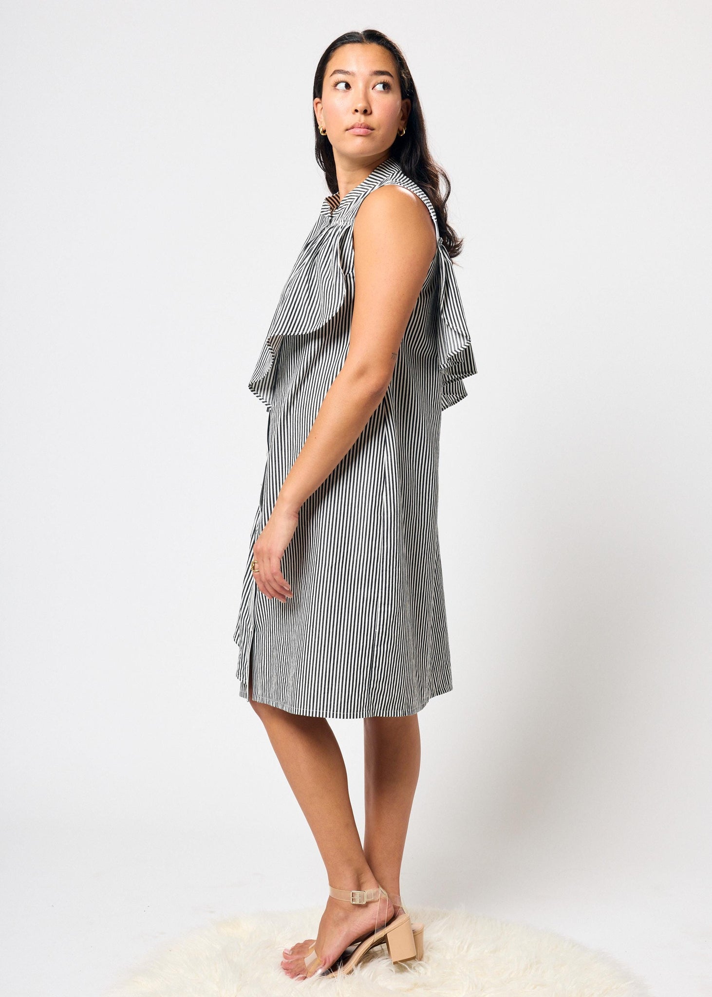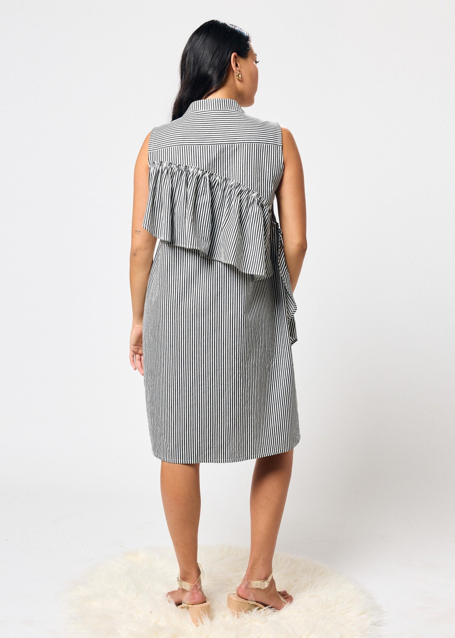 Falling Ruffles Dress | Black and White Striped Sleeveless Shirt Dress