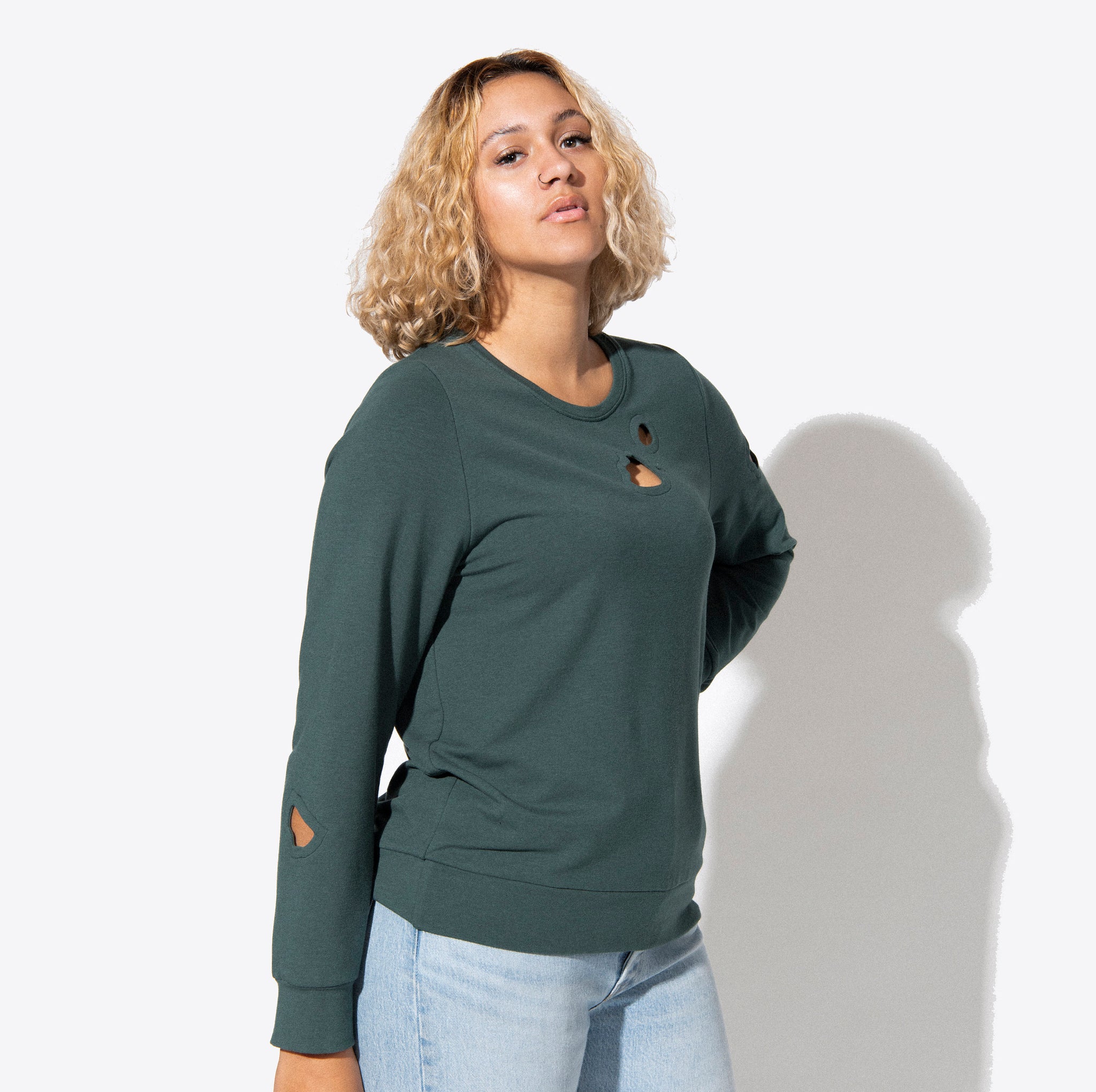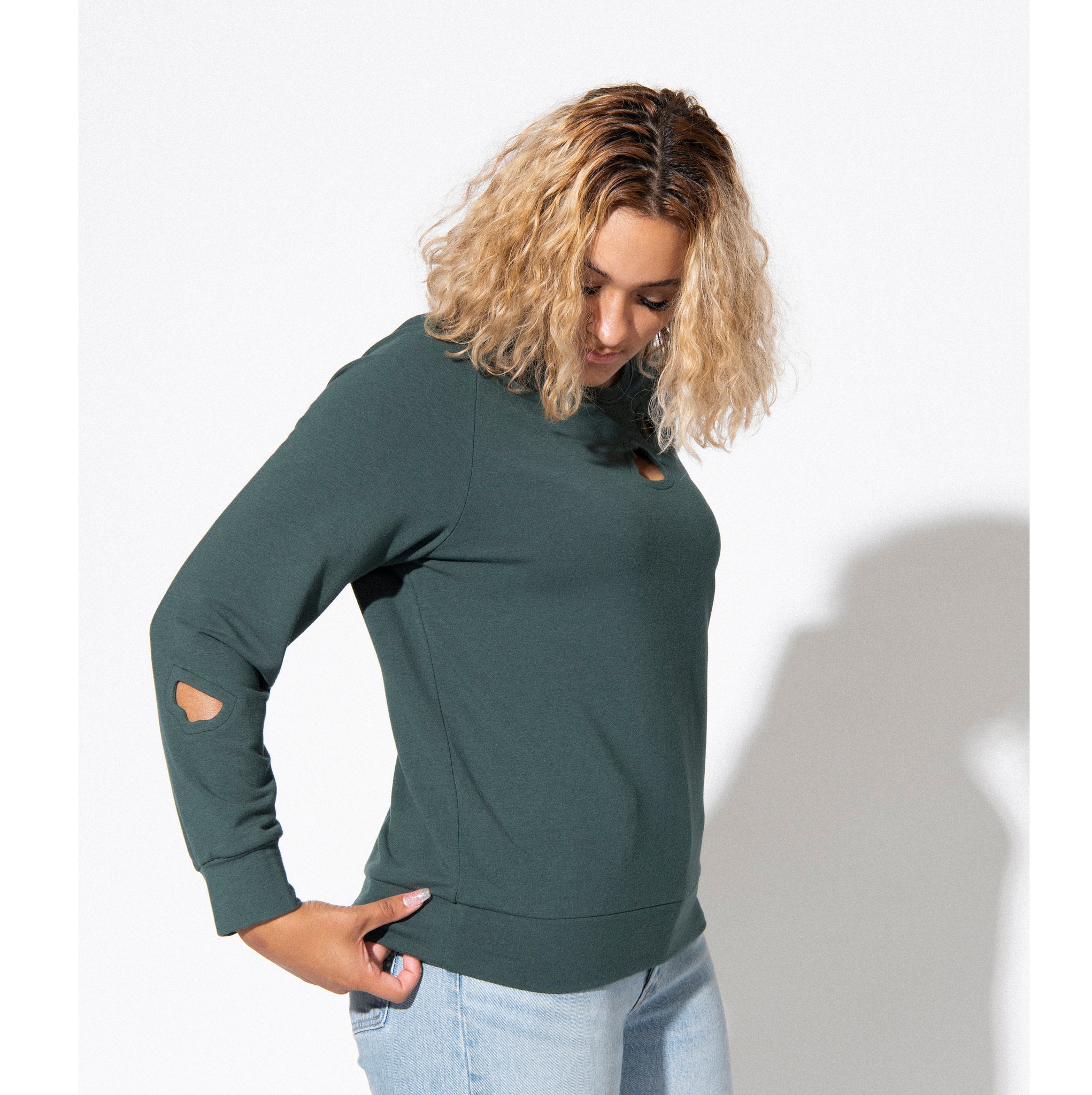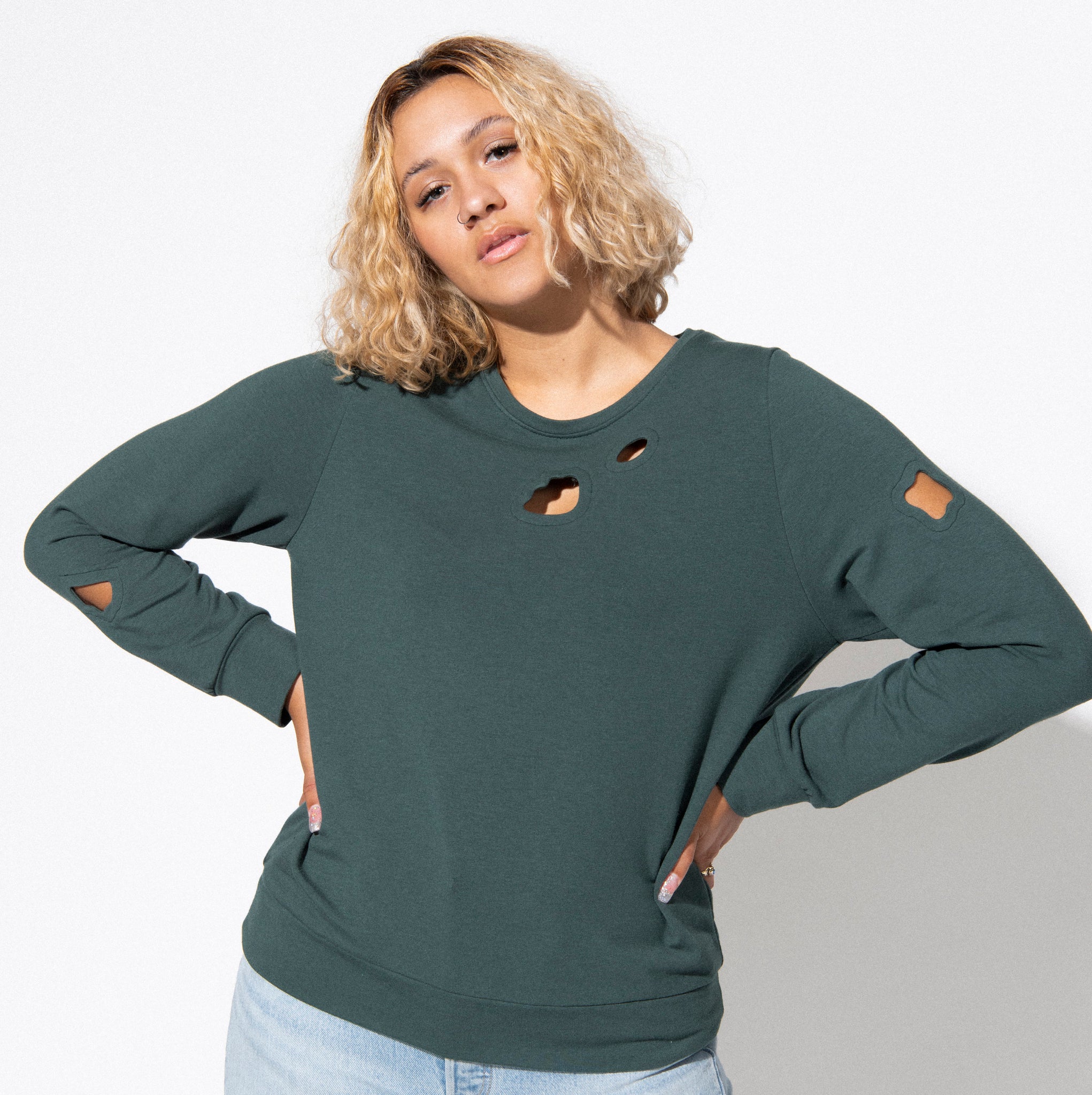 Botanic Cut Out Sweatshirt | Forest Green Bamboo Terry